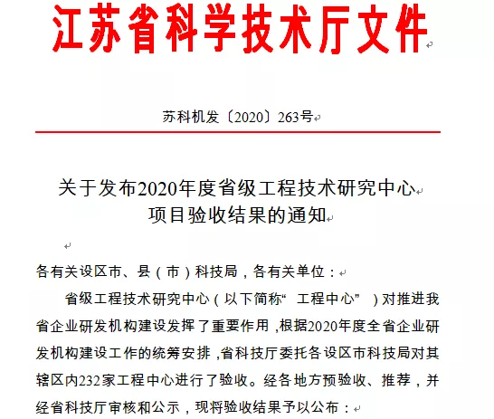 江蘇省工程技術(shù)研究中心是依托江蘇省有關(guān)行業(yè)或領(lǐng)域內(nèi)科技實力較強的重點科研機構(gòu)、省級以上高新技術(shù)企業(yè)和高等院校組建的科研開發(fā)實體。宗旨是以促進(jìn)江蘇省科技創(chuàng)新為目標(biāo),加強工程化研發(fā)平臺建設(shè),開展工程技術(shù)研究、試驗和成套技術(shù)服務(wù),開發(fā)產(chǎn)業(yè)發(fā)展中的共性、關(guān)鍵技術(shù),持續(xù)提供成熟配套的技術(shù)、工藝、裝備和產(chǎn)品,促進(jìn)成果轉(zhuǎn)化和技術(shù)輻射,帶動相關(guān)行業(yè)的技術(shù)水平提升和科技進(jìn)步,增強江蘇產(chǎn)業(yè)技術(shù)創(chuàng)新能力和市場競爭力。