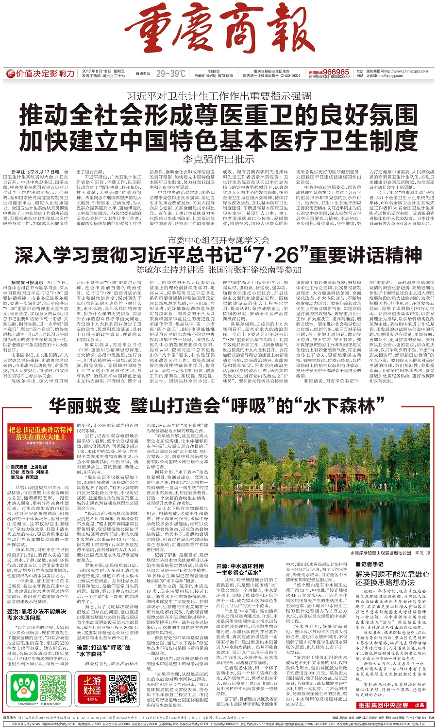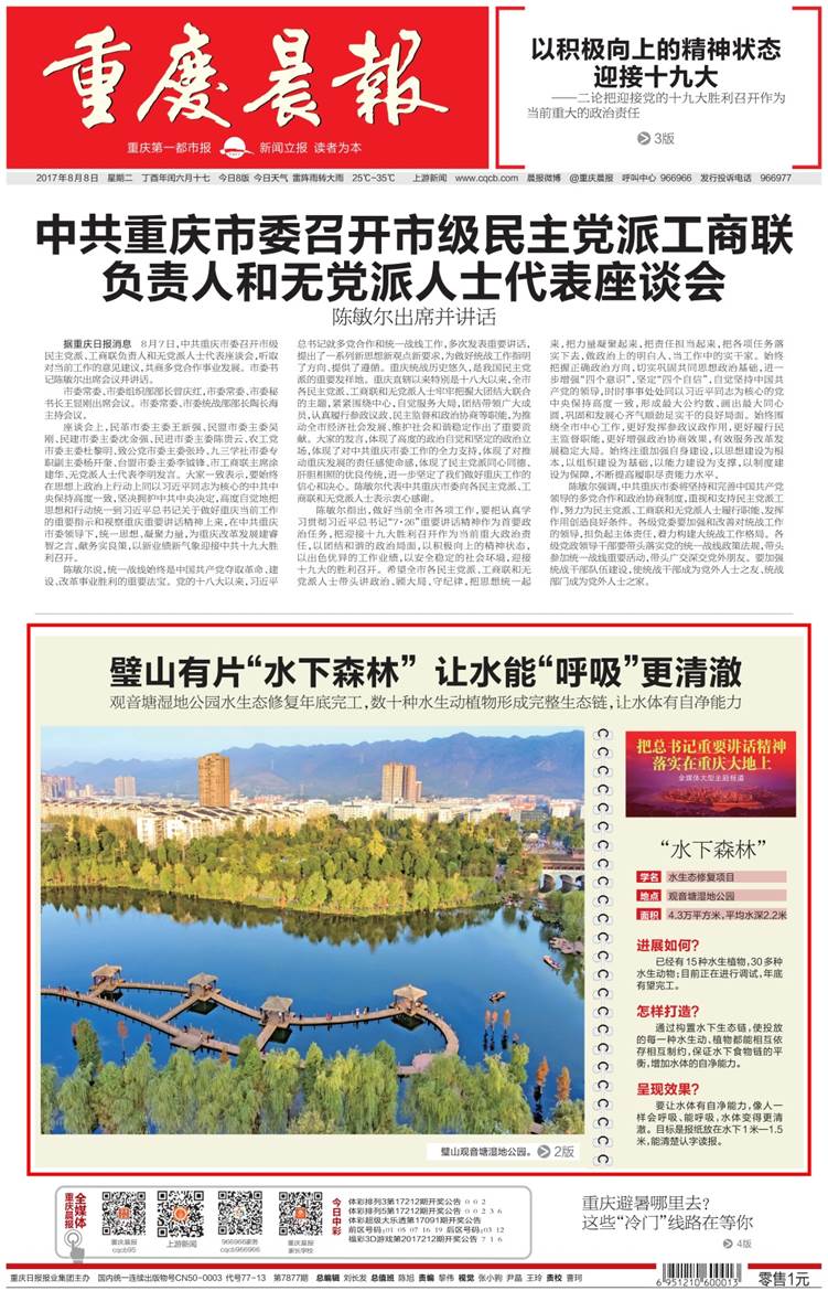 重慶日報、重慶之聲、重慶電視臺、重慶晚報、重慶晨報、重慶商報、華龍網(wǎng)、《當代黨員》雜志社等市級主流媒體記者,來到觀音塘濕地公園,實地探訪了“水下森林”建設(shè)情況,采訪了項目設(shè)計施工單位【南京中科水治理股份有限公司】工作人員。觀音塘濕地公園項目是由中科水治理傾力打造的精品水生態(tài)修復(fù)項目,也是重慶市首個生態(tài)文明建設(shè)示范基地。
