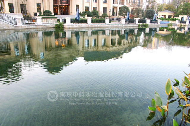 復(fù)地御香山二期景觀湖為新開(kāi)挖人工湖體。業(yè)主要求通過(guò)建立健康、穩(wěn)定、經(jīng)濟(jì)的清水型生態(tài)系統(tǒng)來(lái)保護(hù)湖水水質(zhì),實(shí)現(xiàn)長(zhǎng)效景觀性。水生態(tài)工程施工時(shí)間為2012年3月10日至5月30日??⒐ず螅瑥?fù)地御香山二期景觀湖水質(zhì)主要指標(biāo)達(dá)到 《國(guó)家地表水環(huán)境質(zhì)量標(biāo)準(zhǔn)》GB3838-2002 Ⅱ 類標(biāo)準(zhǔn),常年水體透明度在1.7米以上清澈見(jiàn)底,生態(tài)系統(tǒng)健康穩(wěn)定。