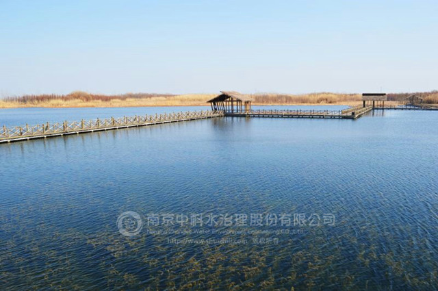 溱湖國(guó)家濕地公園內(nèi)的溱湖風(fēng)景區(qū)是國(guó)家5A級(jí)旅游景區(qū)和經(jīng)江蘇省人民政府批準(zhǔn)的省級(jí)風(fēng)景名勝區(qū),是由國(guó)家林業(yè)局批準(zhǔn)設(shè)立的全國(guó)第二家、江蘇省首家國(guó)家級(jí)濕地公園。溱湖生態(tài)構(gòu)建示范區(qū)水面面積約8萬(wàn)㎡,平均水深1.5m,生態(tài)構(gòu)建之前水體透明度僅為25cm。我司通過(guò)人工干預(yù),打破水體濁水穩(wěn)定態(tài),水生植被覆蓋率70%左右,水體平均透明度達(dá)到1.5m,清澈見(jiàn)底,形成穩(wěn)定的良性生態(tài)系統(tǒng)。竣工至今,生態(tài)系統(tǒng)一直保持穩(wěn)定,水質(zhì)指標(biāo)達(dá)到《地表水環(huán)境質(zhì)量標(biāo)準(zhǔn)》(GB3838-2002)Ⅰ類水標(biāo)準(zhǔn)。