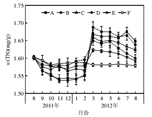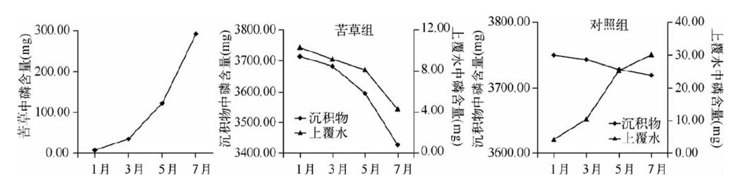 苦草對(duì)水體營鹽的去除率隨生物量的增加不斷增大,當(dāng)生物量達(dá)到 2380.00g時(shí),去除率放緩??嗖莞瘮♂尫诺牧状蟛糠直坏啄辔?,少量進(jìn)入水體。草腐敗分解具有階段性,前36d分解迅速,以后分解速率顯著下降。